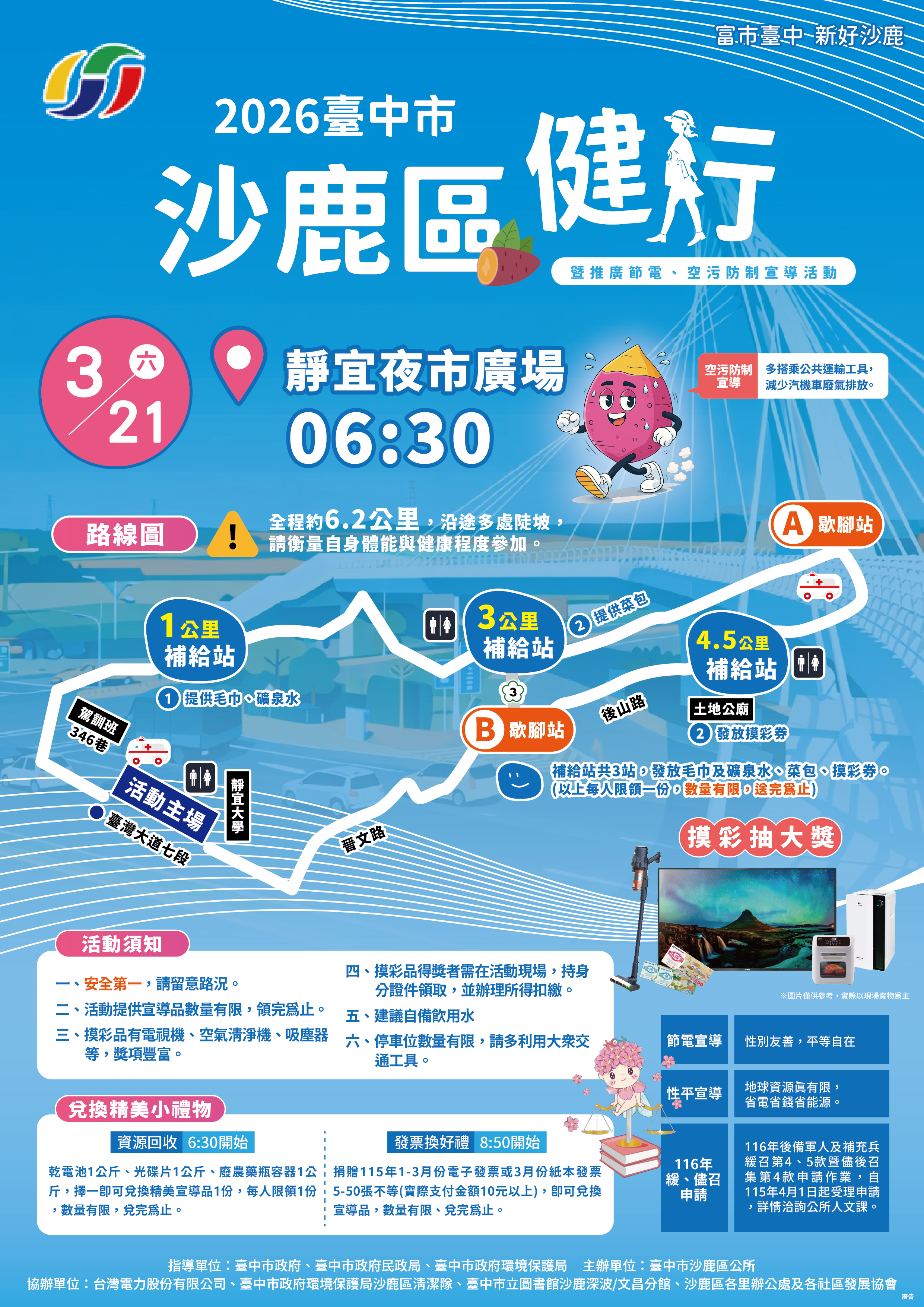 臺中市沙鹿區公所辦理「2026沙鹿區健行暨推廣節電、空污防制宣導活動」