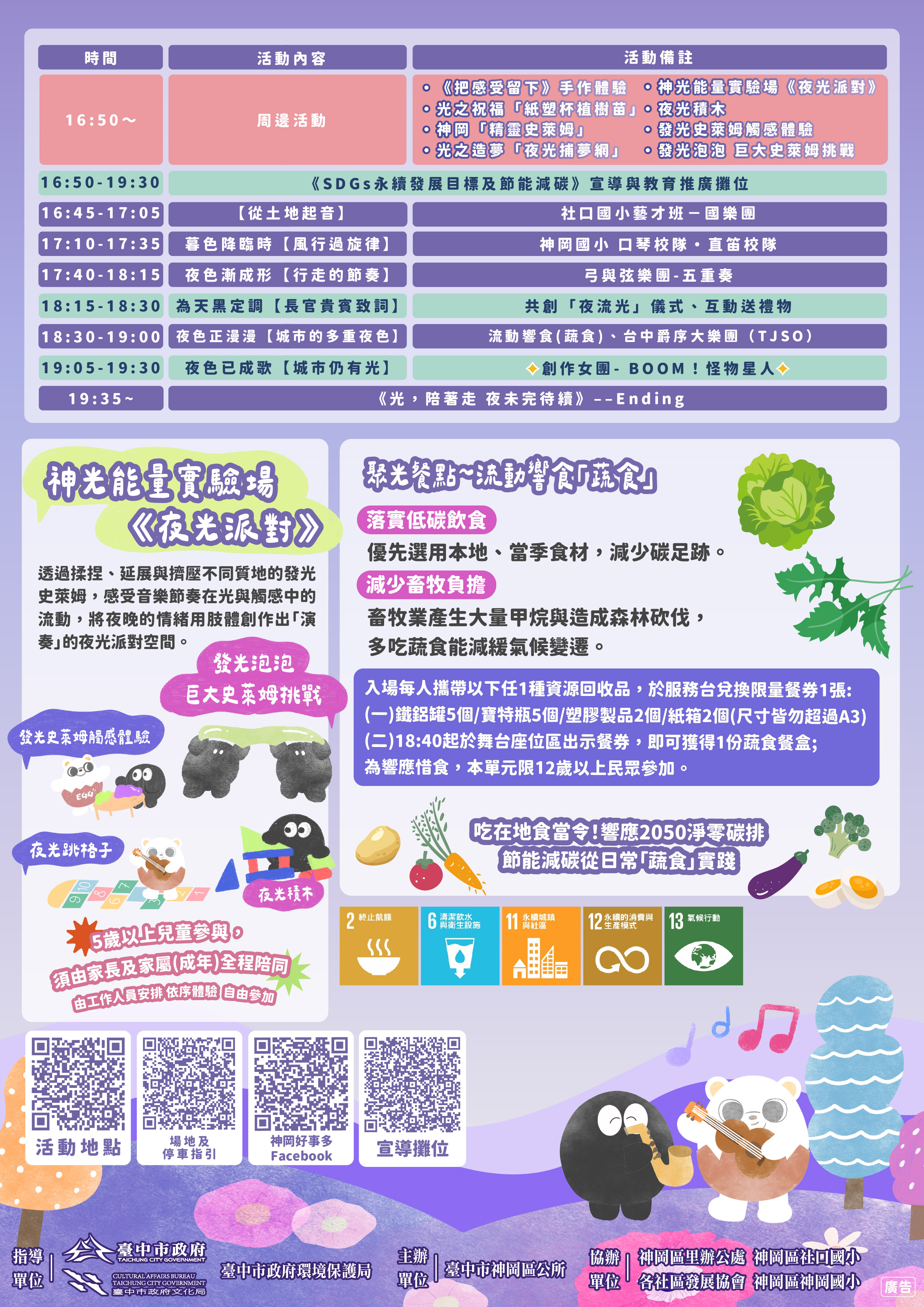 (二) 活動地點:神岡豐洲公園。停車地點:神岡大明宮廟埕廣場(神岡區神洲路159巷96號,對面即豐洲公園入口處),建議掃描文宣交通及停車Qr code直接導航。